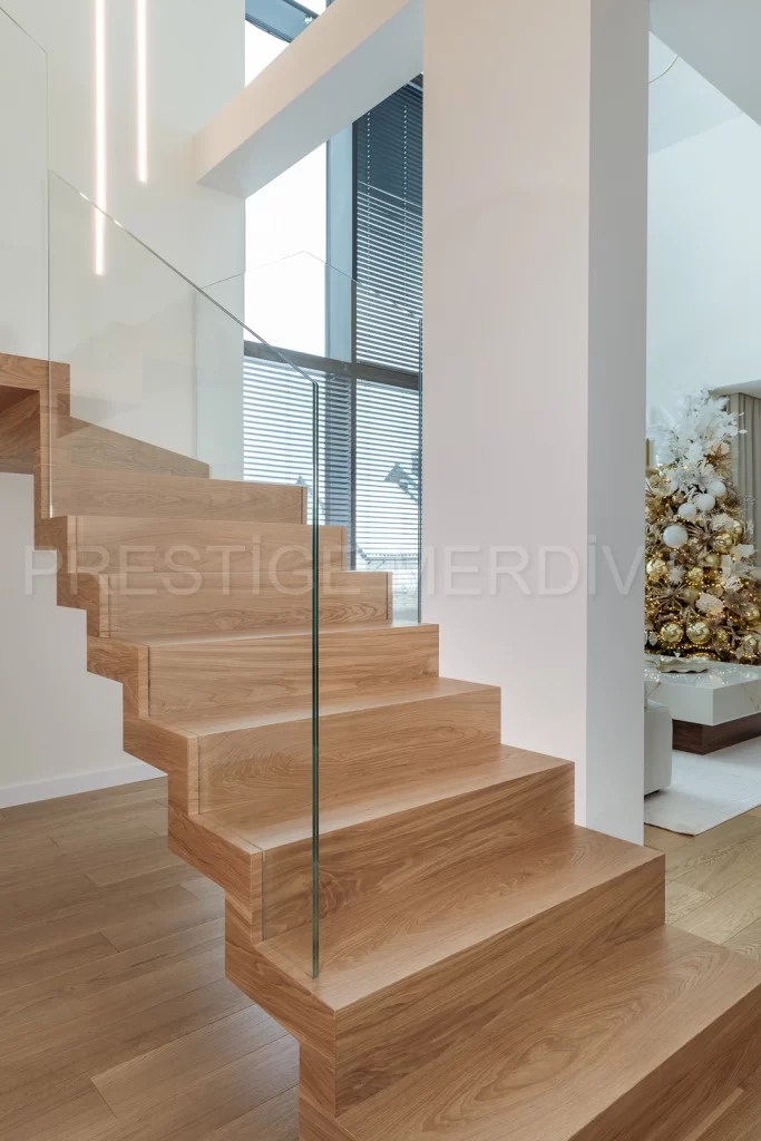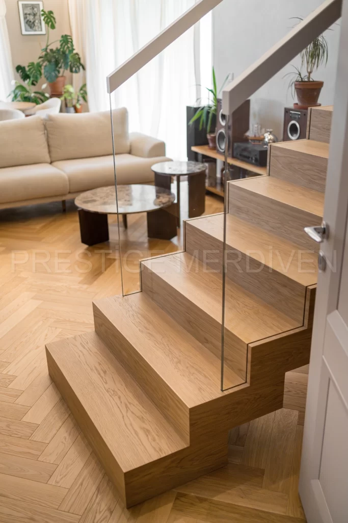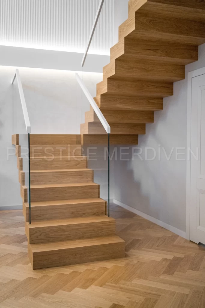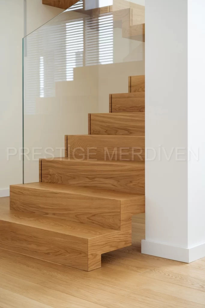 Prestige Ahşap olarak merdiven imalatında piyasada satılan hazır sıkıştırılmış masif paneller kullanılmaz. Bu tür malzemeler zamanla dönebilir, çatlayabilir ve ek yerlerinde açılmalar meydana gelebilir. Ayrıca yapılan işi basit gösterir.