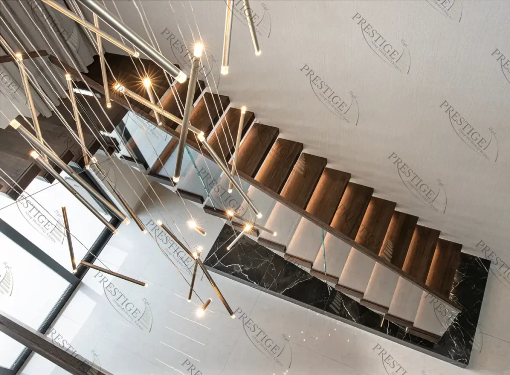 Askılı Merdivenler: Modern ve minimalist tasarım anlayışını yansıtan askılı ahşap merdivenler, havada süzülüyor gibi görünen basamaklarıyla dikkat çeker ve mekanınıza hafif bir görünüm kazandırır.